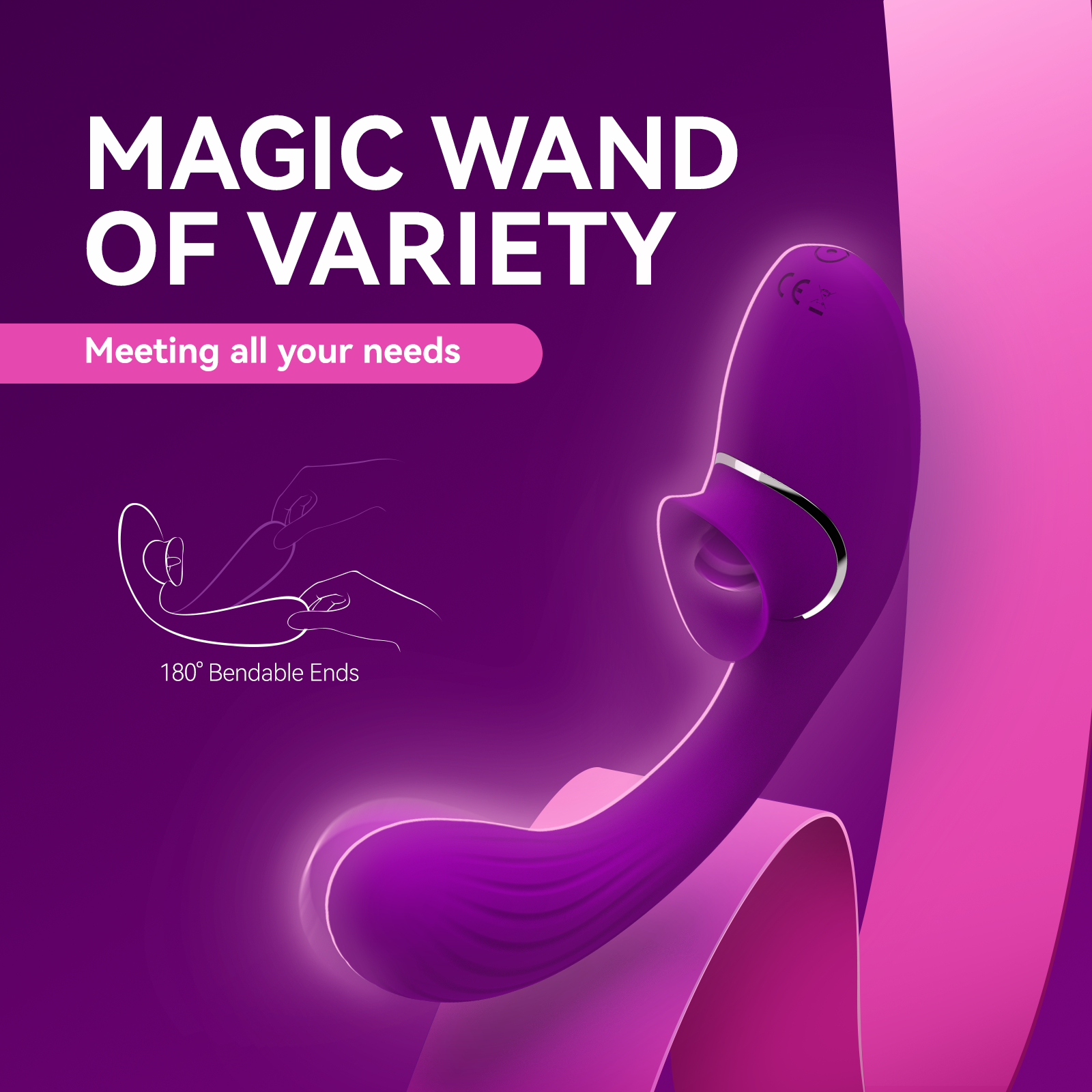“Experience enchantment with our MAGIC WAND—designed for double arousal and crafted with cutting-edge technology. Its 180° bendable ends and 10 vibration modes create a customizable journey of pleasure. With the added flexibility and waterproof feature, indulge in a variety of sensations worry-free.”
