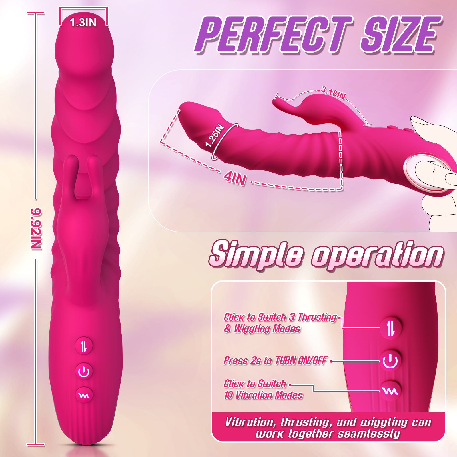 This rabbit vibrator features dual motors with 10 intense vibration modes, delivering synchronized pleasure to both your G-spot and clitoris. The soft rabbit ears focus on clitoral stimulation while the other motor targets deep within for G-spot satisfaction.